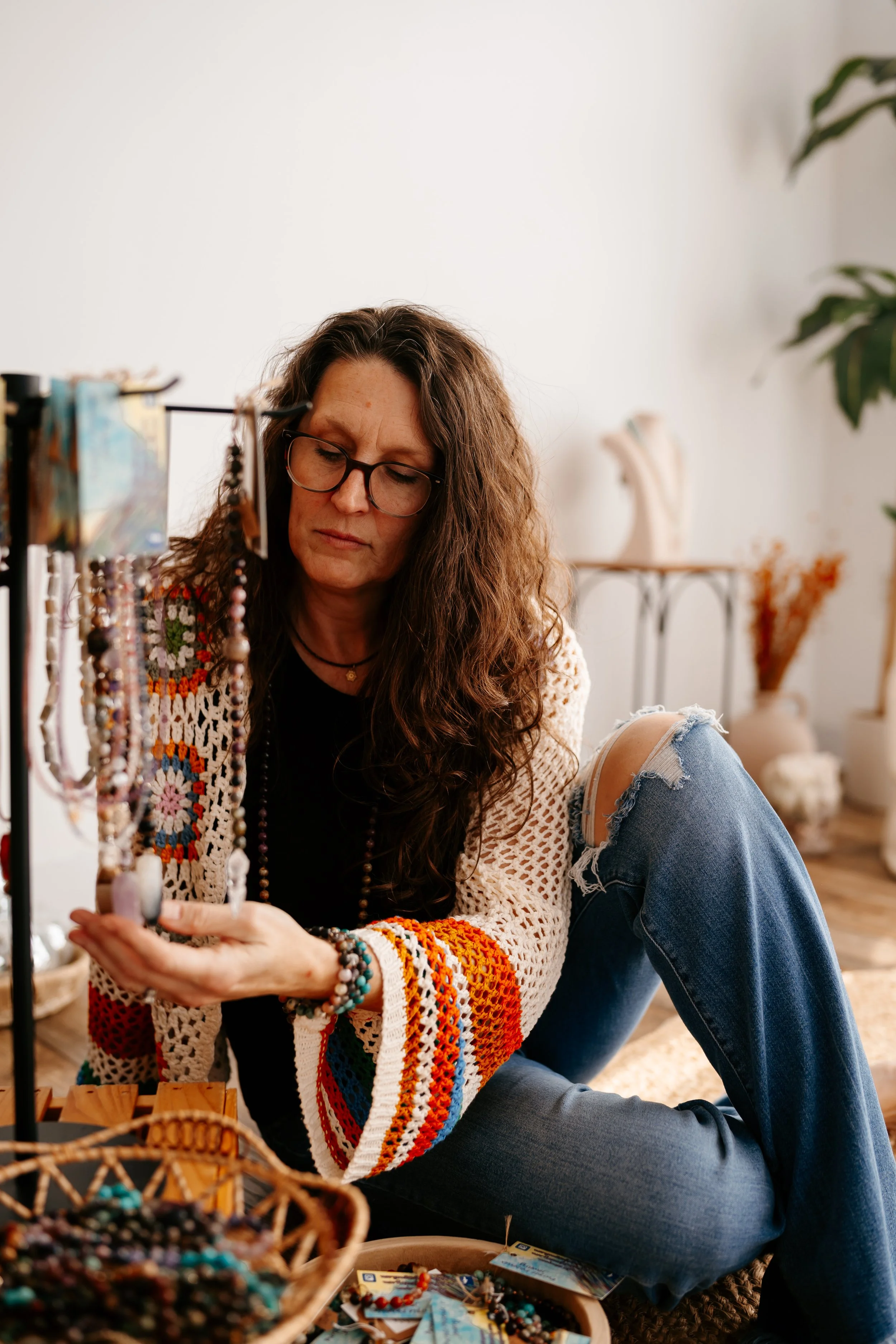 My journey with Purple Phoenix Jewelry began from a deep, inner space of healing. Chronic pain and illness sent me on a quest to find something to calm my mind and my spirit. I signed up for a mala making class and began researching about crystals I was drawn to and how to create my own mantra. As I strung each bead, I fell in love! It was very meditative, incredibly healing, and it gave me a new way to express my love of crystals and stones. I believe this is why so many of my customers return and say my pieces just “feel different” and comment about the peace they feel while wearing them.